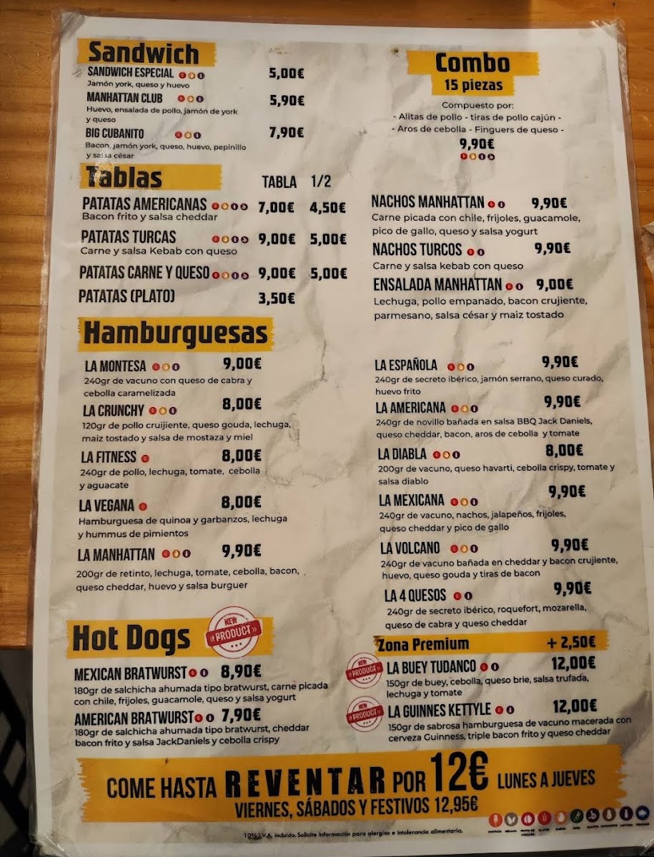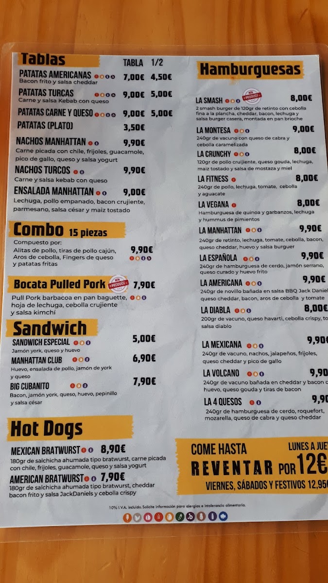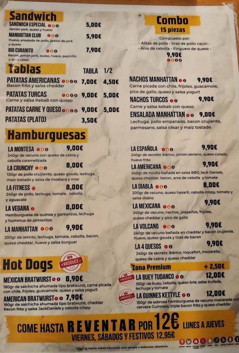 Manhattan Food & Drinks, located in El Puerto de Sta María, Cádiz, offers a delightful culinary experience that focuses on gourmet burgers and an inviting atmosphere. Patrons rave about the exceptional quality of the food, with frequent mentions of the standout burgers that some patrons claim to be the best they've had in Spain. Diners appreciate the attentive service, with staff dedicated to ensuring a pleasant visit. The restaurant's vibrant ambiance, paired with an enticing menu—which includes a tempting all-you-can-eat option—makes it an irresistible destination for food lovers. Whether you're in for a casual bite or a night out, Manhattan Food & Drinks promises satisfaction.
